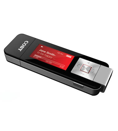 Coby 512MB USB-stick MP3 player plays MP3 / WMA digital music files. Features mobile data storage function and integrated FM radio / recorder. Includes stereo headphones, neckstrap, USB extension cable and 1 AAA battery.