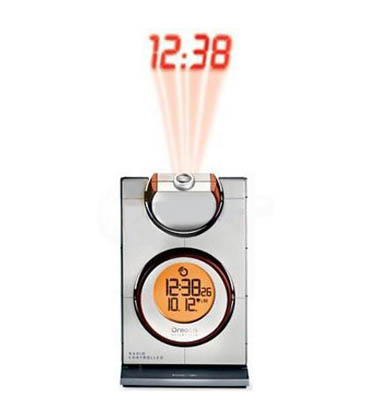 With tilting projection head, allows you to display the time and alarm status vertically or horizontally on your ceiling or wall. The clock runs on 2 included AA batteries, or you can plug in with the included AC adaptor. Features dual alarms, snooze, time and date.