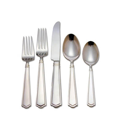 Set is stainless steel, 18/10, popular Continental size, includes eight 5-piece place settings and a 5-piece hostess set.