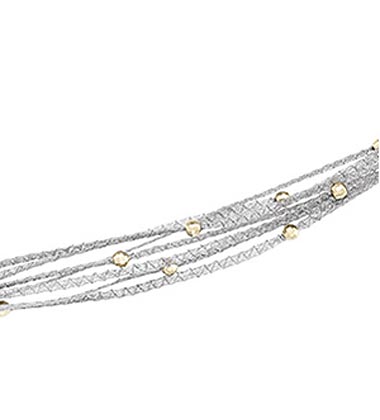 Tiffany style 14K white gold strands with yellow gold diamond cut beads, 7 1/2" long.
